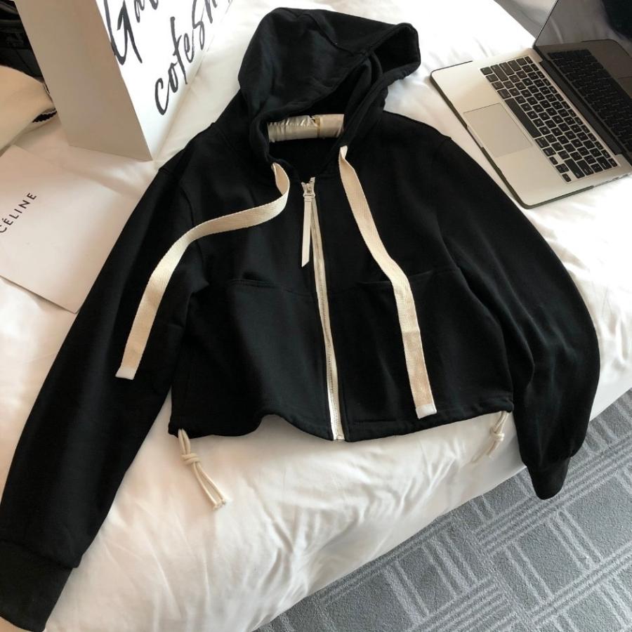 パーカー ショート丈 ショートパーカー アウター 長袖 萌え袖 ジッパー チャック 前開き フード付き 人気 シンプルコーデ 羽織り 公園コーデ Dl1492 Minette インポートアパレル 通販 Yahoo ショッピング